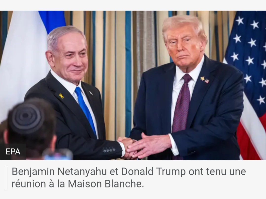 Légende image,Benjamin Netanyahu et Donald Trump ont tenu une réunion à la Maison Blanche.