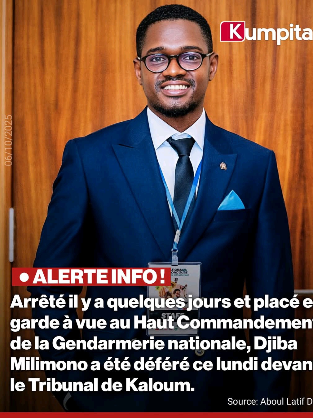 Selon des sources proches du dossier, l’arrestation de Djiba Milimono serait liée à une publication qu’il a faite sur les réseaux sociaux.