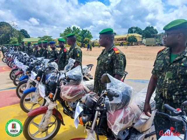 La réception officielle de ces engins roulants a eu lieu à la portion centrale de N’Zérékoré le 1er octobre dernier. Très satisfait, le Commandant de la 4ème Région Militaire, Colonel Amara SYLLA, a exprimé sa profonde gratitude envers les autorités militaires, en particulier le Ministre de la Défense Nationale qui traduit en actes concrets la vision du Général Mamadi DOUMBOUYA, Président de la RépCe sont au total, 19 motos qui viennent d’être remises pour renforcer les capacités opérationnelles des structures sanitaires des forces armées guinéennes de la 4ème Région Militaire