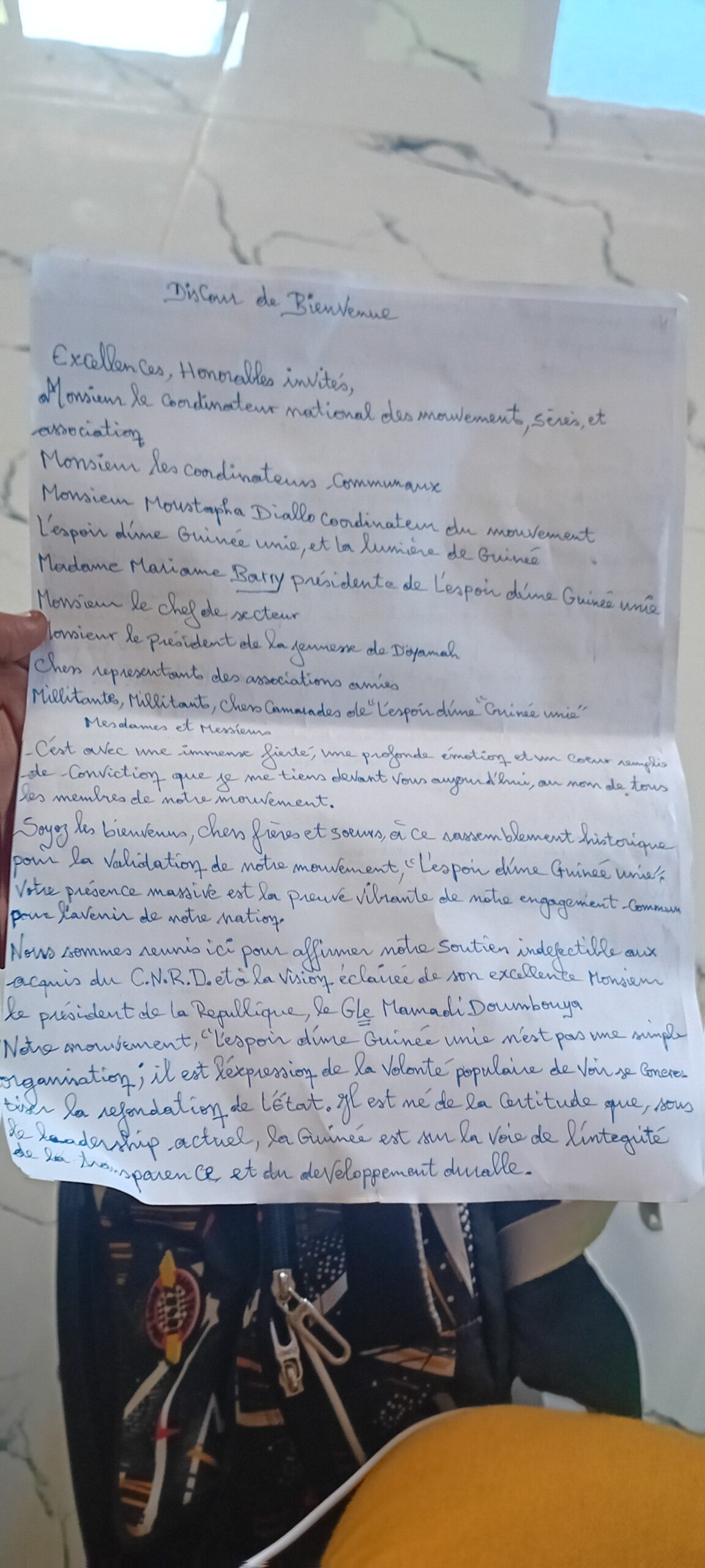 Par la suite, un discours de bienvenue  a été lu pour démontrer les sentiments, et la satisfaction des ses militants et sympathisants du mouvement en question.