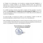 Ci-dessous le communiqué de la présidence :